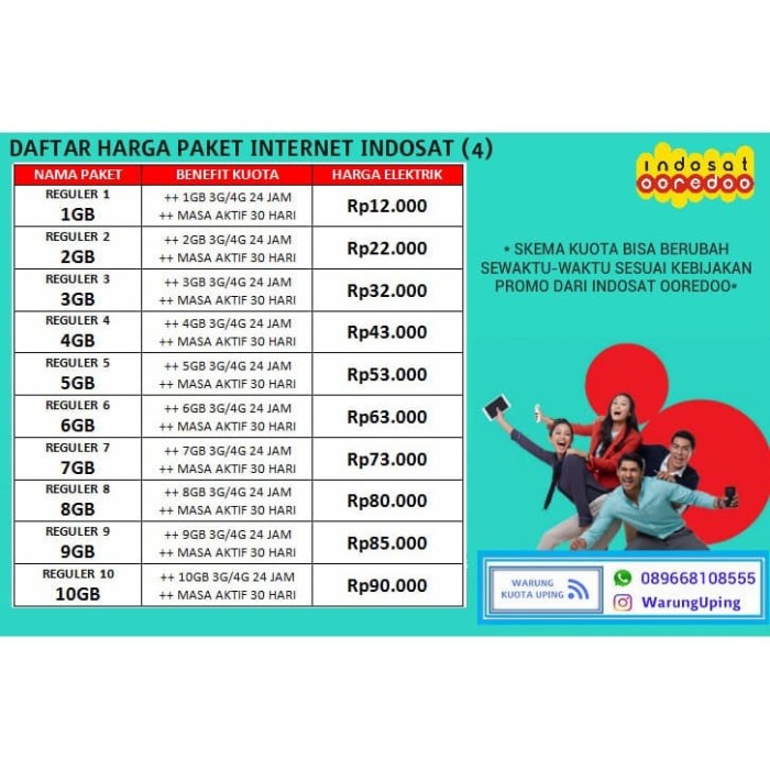 Paket yang paling murah seindosat karena hanya dengan rp 1000 kamu bisa mendapatkan kuota 1 gb. Bandingkan paket internet indosat 4g termurah. Daftar harga paket internet indosat yang memiliki berbagai macam kelebihan dari kuota dan harga yang sudah di tentukan dalam paket paket tertentu.
